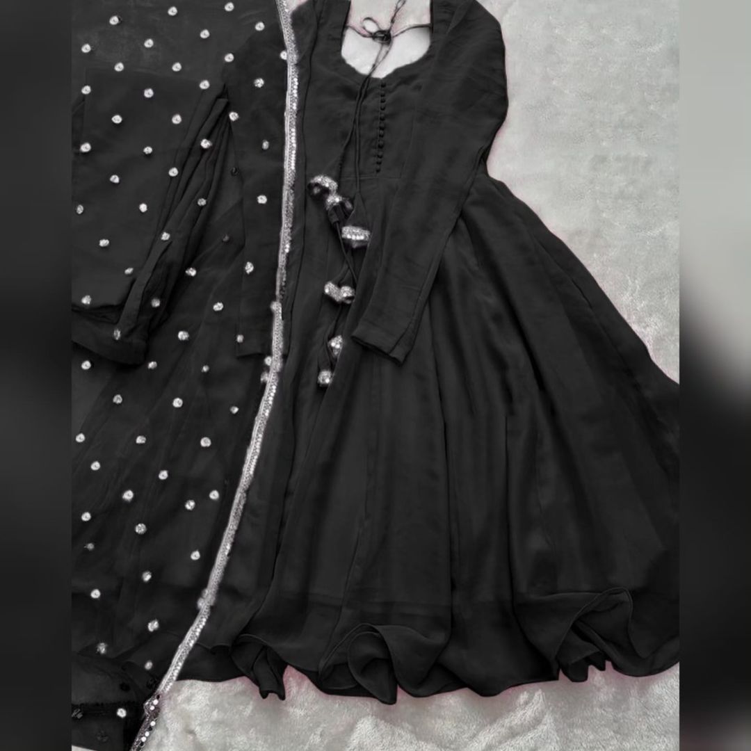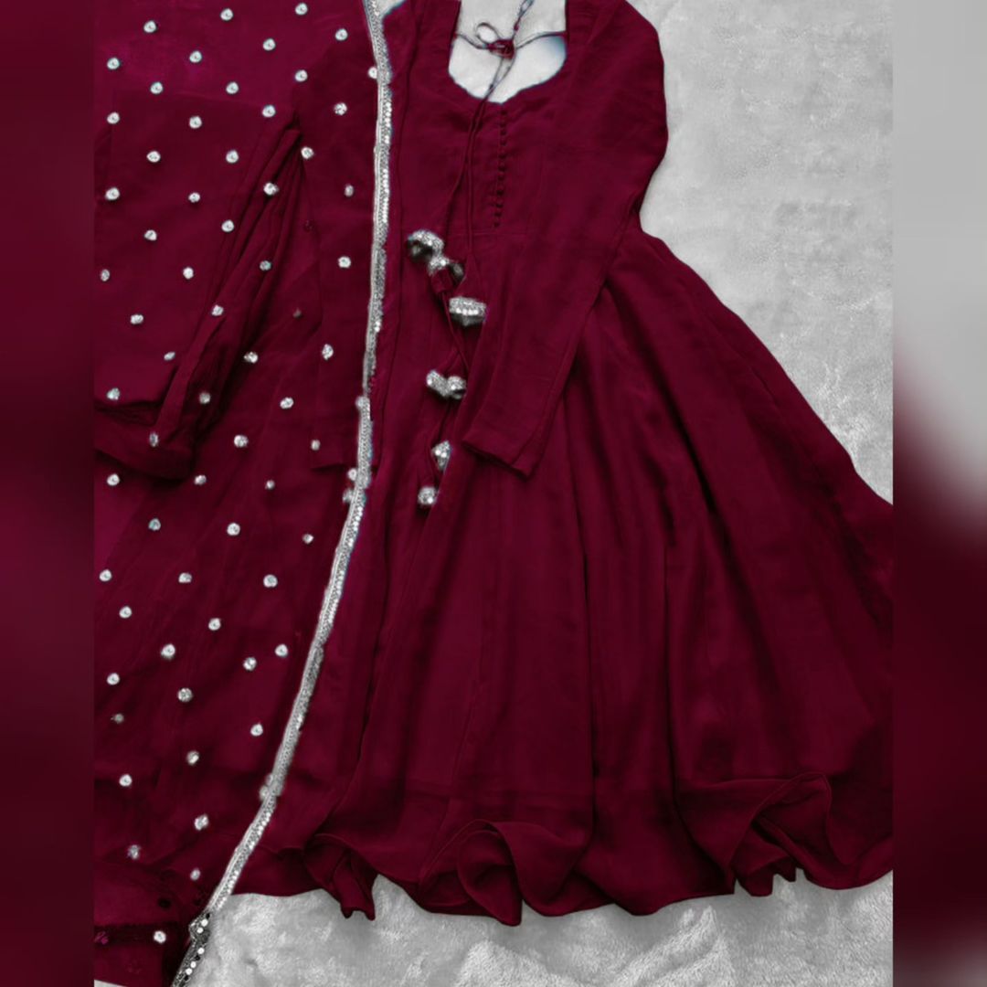 V Neck Long Sleeves Maxi With Lace Attached On Dupatta 3Pcs