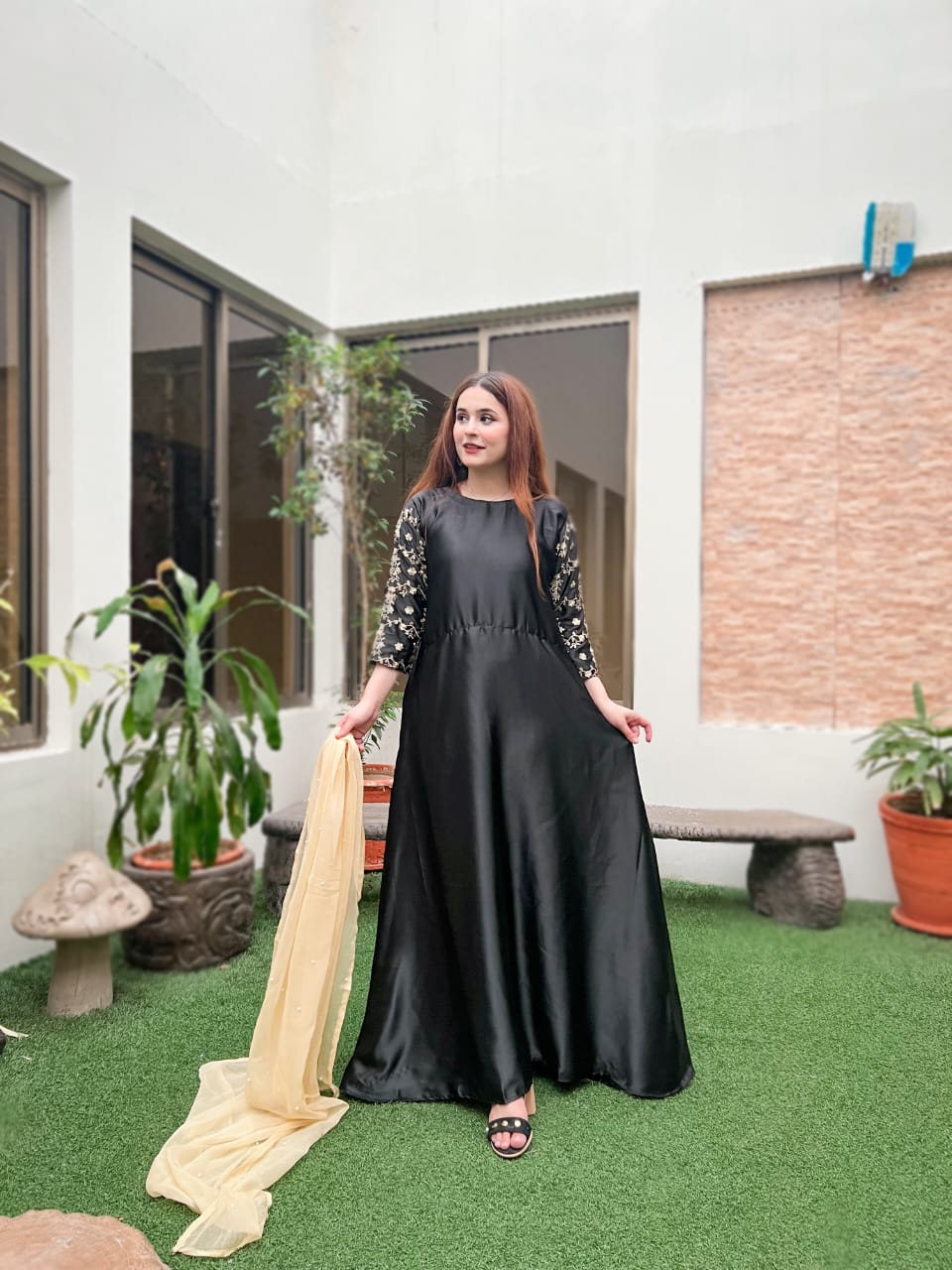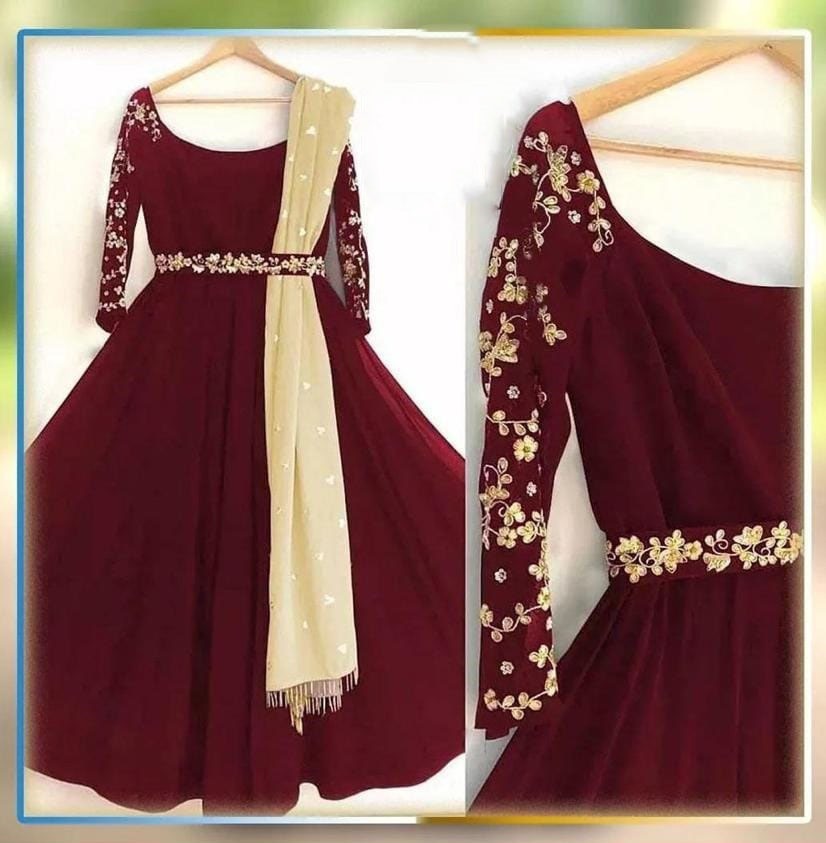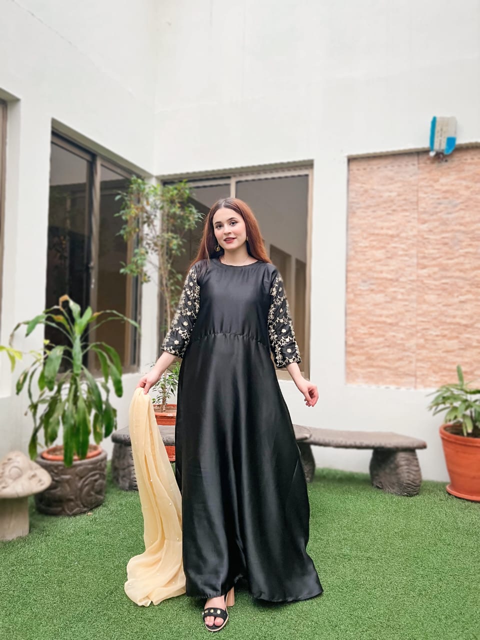 Sleeve, Belt Embroidery Maxi With Pearls Attached Dupatta 4Pcs