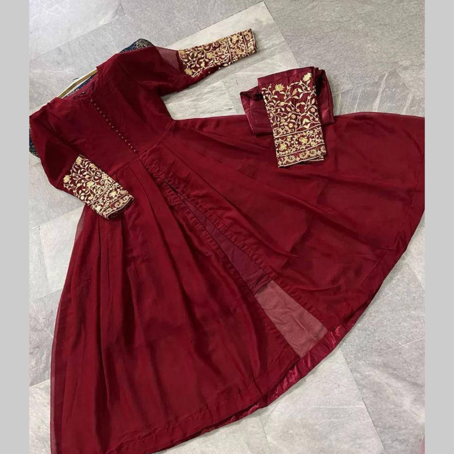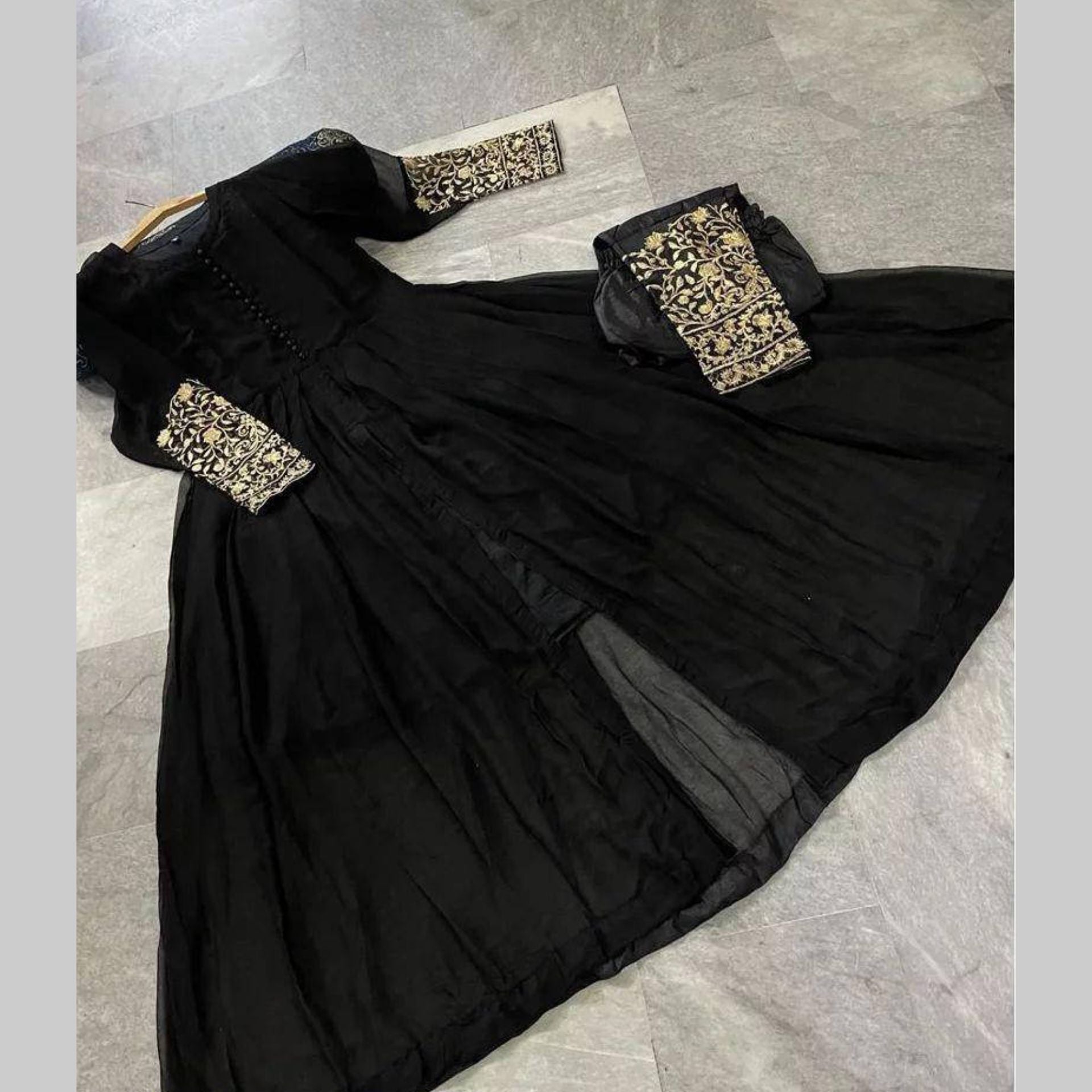 🔹 Sleeves Embroided Maxi With Bottom Embroided Trouser