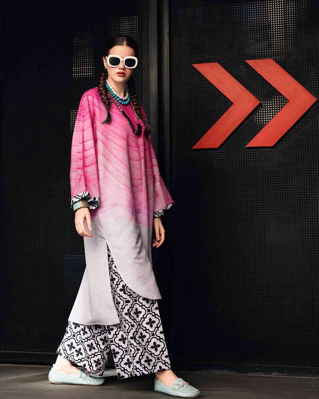 This premium Tie and Dye Cord-set 2 Piece features allover digital prints on both the front and back of the shirt, crafted from high-quality Swiss Lawn fabric. Complemented by a printed flapper made from the same luxurious material, this set offers a sophisticated blend of comfort and style perfect for refined, contemporary wear. The breathable Swiss Lawn ensures lightweight ease, while the detailed digital prints add a unique artistic touch to your wardrobe.
